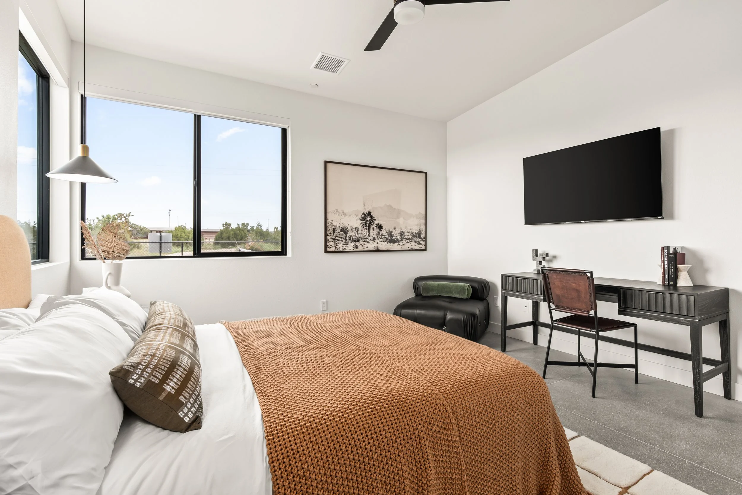 Set on a sprawling 3.2-acre estate, this newly constructed modern masterpiece spans 1787 square feet, seamlessly blending refinement with tranquility. Crafted in 2024 with meticulous attention to detail, this home epitomizes contemporary elegance and unmatched craftsmanship. Step inside to discover an open-concept layout that effortlessly merges indoor and outdoor living spaces. Natural light floods through strategically placed windows, illuminating the high ceilings and creating an inviting ambiance. At the heart of the home, a bespoke kitchen awaits, featuring custom cabinets, porcelain counters, and a walk-in pantry. Designed for both beauty and functionality, the floor plan positions the kitchen and living areas as the central focal point, surrounded by private bedrooms on either side. Every corner of the house exudes opulence and comfort, furnished with carefully selected pieces from renowned brands such as CB2 and West Elm. Outside, a private oasis awaits, boasting over 60 majestic Joshua Trees and a plethora of amenities tailored for entertainment and relaxation. The fenced backyard features a pristine pool with smart technology, a tranquil spa, a cozy fire pit, an outdoor shower, a barbecue, and a 4-person hammock circle. Luxury seamlessly extends throughout the home, with integrated indoor and outdoor Sonos speaker systems, 4K TVs, and fully-paid solar panels ensuring both comfort and sustainability. The front yard features a regulation-sized pickleball court, complemented by a 2-car garage that transforms into a game room/hangout area during pickleball matches. Ideally located near hiking trails, the National Park entrance and the vibrant Village offering an array of dining, shopping, and entertainment options, this residence strikes the perfect balance between seclusion and convenience. This is more than just a place to live – it's an experience that encapsulates creativity, style, luxury, peace, and inspiration all at once.